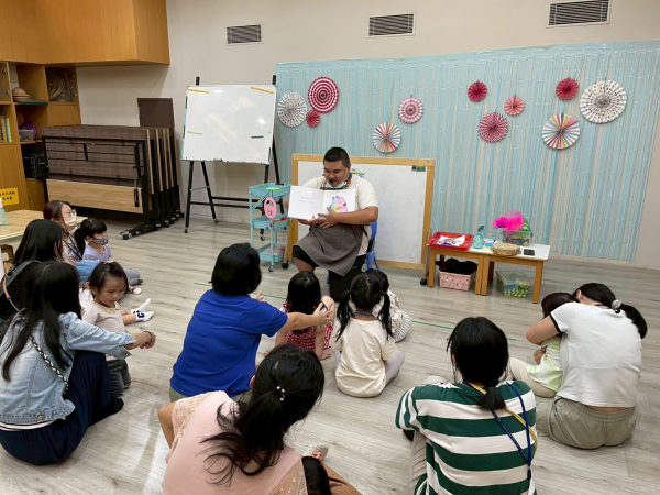 卡比獸老師用音樂律動進行暖身開場,並運用樂器引導親子們感受情緒的起伏,活動中透過繪本故事及遊戲幫助親子認識情緒,最後帶領親子一起製作小阿爆,利用皺紋紙及水讓色彩暈染在圖案上,這個過程能訓練幼兒專注力及精細動作的發展,每組親子都展現滿滿的創意,所有作品都五彩繽紛呢!