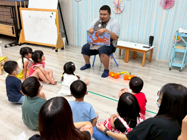 卡比獸老師透過繪本故事帶領大家探索動物的世界,並結合動物敲敲樂來幫助小朋友們加深對動物的認識,最後帶領親子們一起製作小章魚拼豆,過程中能訓練孩子小肌肉及專注力的訓練,每組親子都展現滿滿的創意!