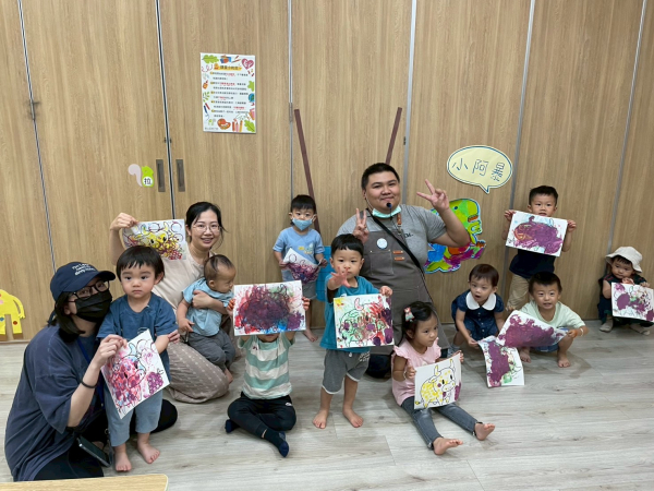 卡比獸老師透過繪本故事帶領親子認識各種水果,並邀請親子挑選自己喜歡的水果與大家分享,最後老師教導親子體驗蓋印畫,利用手指與蓋印工具來完成創作,過程中培養孩子的精細動作與手眼協調能力,回家以後也可以和孩子一起玩。