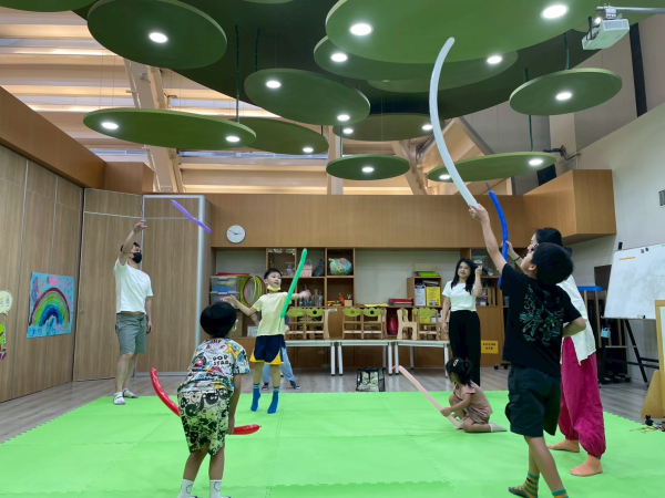 今天雯雯老師先透過彩色眼鏡帶領親子們看世界,接著透過瑜珈動作化身為鯨魚、鯊魚、魟魚,讓孩子認識海洋動物,最後也希望爸爸媽媽能把今天學到的瑜珈動作帶回家,與孩子一起動動身體喔!