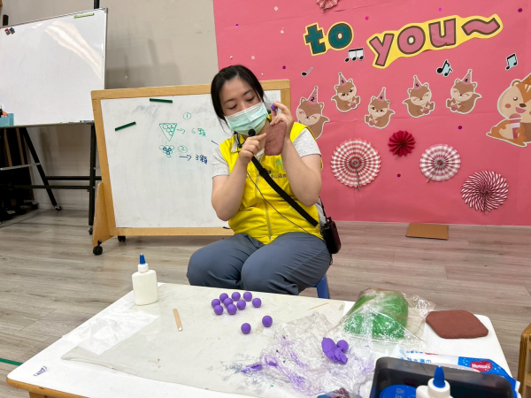 今日莉莉老師透過手指謠拉近與親子間的距離,用感官探索的方式認識又圓又香甜的葡萄,再用好玩的黏土捏出一串可愛的葡萄,活動中每組親子都能相互合作完成勞作,大家都很棒唷!
