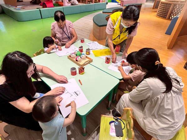 櫻花老師透過繪本讓幼兒認識「家」,並帶領大家一起唱「家在哪裡」歌謠,小朋友們還輪流說最喜歡家中哪件家具,最後孩子們利用蠟筆及模板在圖畫紙上畫出家及家中布置,一起化身小小設計師呢!