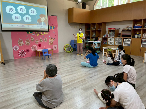 今日莉莉老師透過分享、小短片和遊戲的方式認識交通安全地重要性,並加強宣導幼童過馬路時需確實操作「停、看、轉、揮、動」等要訣,最後運用簡易素材引導親子繪製桌遊-交通安全路徑圖,活動中親子都能合作完成勞作,大家都很棒唷!