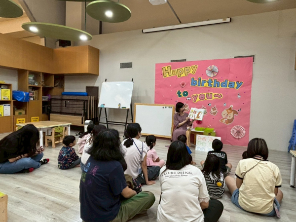 秋芬老師運用繪本「好朋友傳說」引導親子了解尾巴花的生長環境,並在活動中融入親子遊戲與台語詞彙,增進多元文化的認識。最後老師帶領大家運用小花貼紙及透明書籤,一起動手製作創意的花花書籤,每組作品都非常有創意唷!