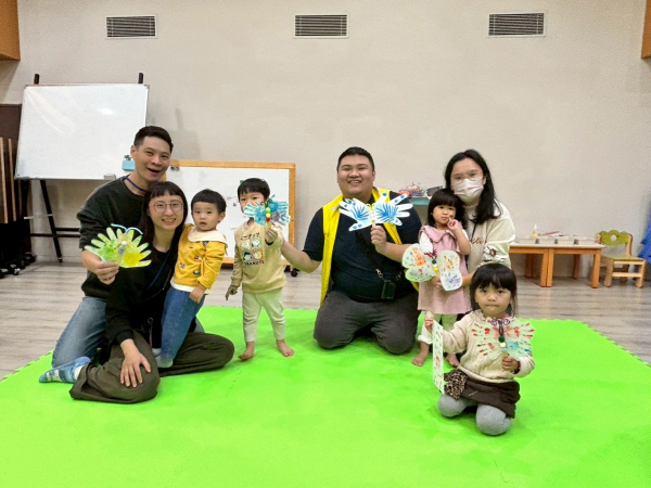 卡比獸老師透過音樂律動帶領親子暖暖身和認識身體部位,並請親子變身成「小小偵探」在教室裡尋找五官圖卡,最後運用手掌蓋印搭配毛根與毛球完成繽紛又可愛的蝴蝶勞作,鼓勵親子回家後可利用歌曲持續複習身體部位。