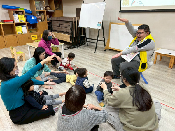 卡比獸老師帶著親子在音樂律動中一起學洗手,孩子們化身為「小小偵探」,張大眼睛找找手上的細菌藏在哪裡,每組親子都發現手上的小細菌,最後帶領親子認識洗手七字訣及五步驟,利用刮鬍泡與顏料練習洗手,鼓勵親子回家後搭配歌曲持續練習,養成良好衛生習慣。