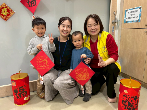 老師們帶領我們認識過年的習俗及吉祥話,我們學到了很多的吉祥話,還一起蓋印春聯、做「年年有魚」的吊飾,我們的作品是不是很美麗呢?