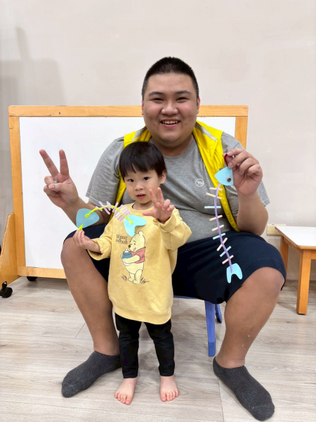 今日跟著卡比獸老師一起唱著「恭喜歌」拜個好年,接著「找找新年物品」遊戲,邀請幼兒睜大眼睛找一找教室裡藏著哪些新年布置,最後帶領親子製作小魚吊飾,利用毛根與吸管完成可愛的魚身造型。回家佈置家裡,也為新的一年帶來滿滿祝福與好運氣!