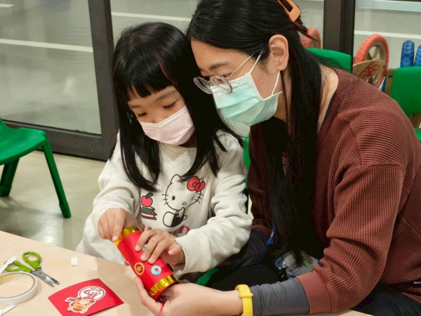 老師們帶領大家認識過年的習俗,也學到了很多的吉祥話,還一起做「年年有魚」的吊飾、馬年相框及鞭炮,每個人的作品是不是都很閃亮呀~!