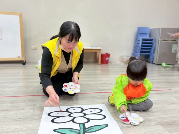 花園裡有什麼呢?花園裡只有花嗎?老師透過繪本故事帶領親子認識花園裡五顏六色的小花、強壯的大樹、綠色的草地和昆蟲們,並用簡單的美勞素材引導親子玩手掌蓋印,每組親子都能相互合作完成手印盆栽,大家都很棒喔!