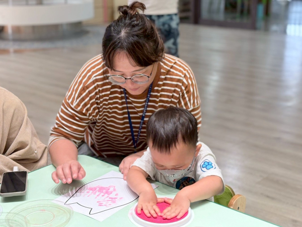 櫻花老師透過繪本故事《走開!我在生氣》帶領親子認識情緒,並透過遊戲探索適合自己的情緒抒發方式。最後大家運用蓋印畫製作貓頭鷹作品,將愉快的回憶轉化為創作,為充實的一天畫下完美句點。