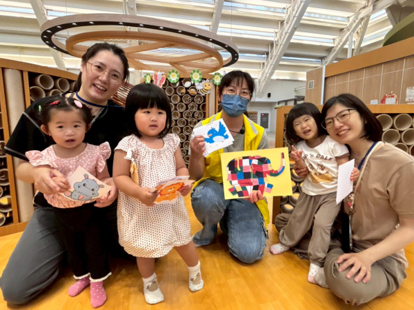 今天和大象艾瑪一起玩捉迷藏吧!教師邀請幼兒翻翻書,看看是誰躲在粉色石頭、橘色木頭後面,透過繪本認識顏色與動物。請幼兒將動物圖塗上漂亮的顏色,接著找一找躲在迷宮裡的動物,還有艾瑪拼圖唷!親子合作一起拼出艾瑪,耶!找到艾瑪了!