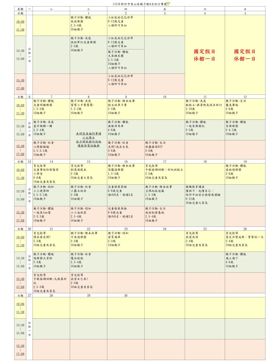 4月份活動行事曆出來囉~(