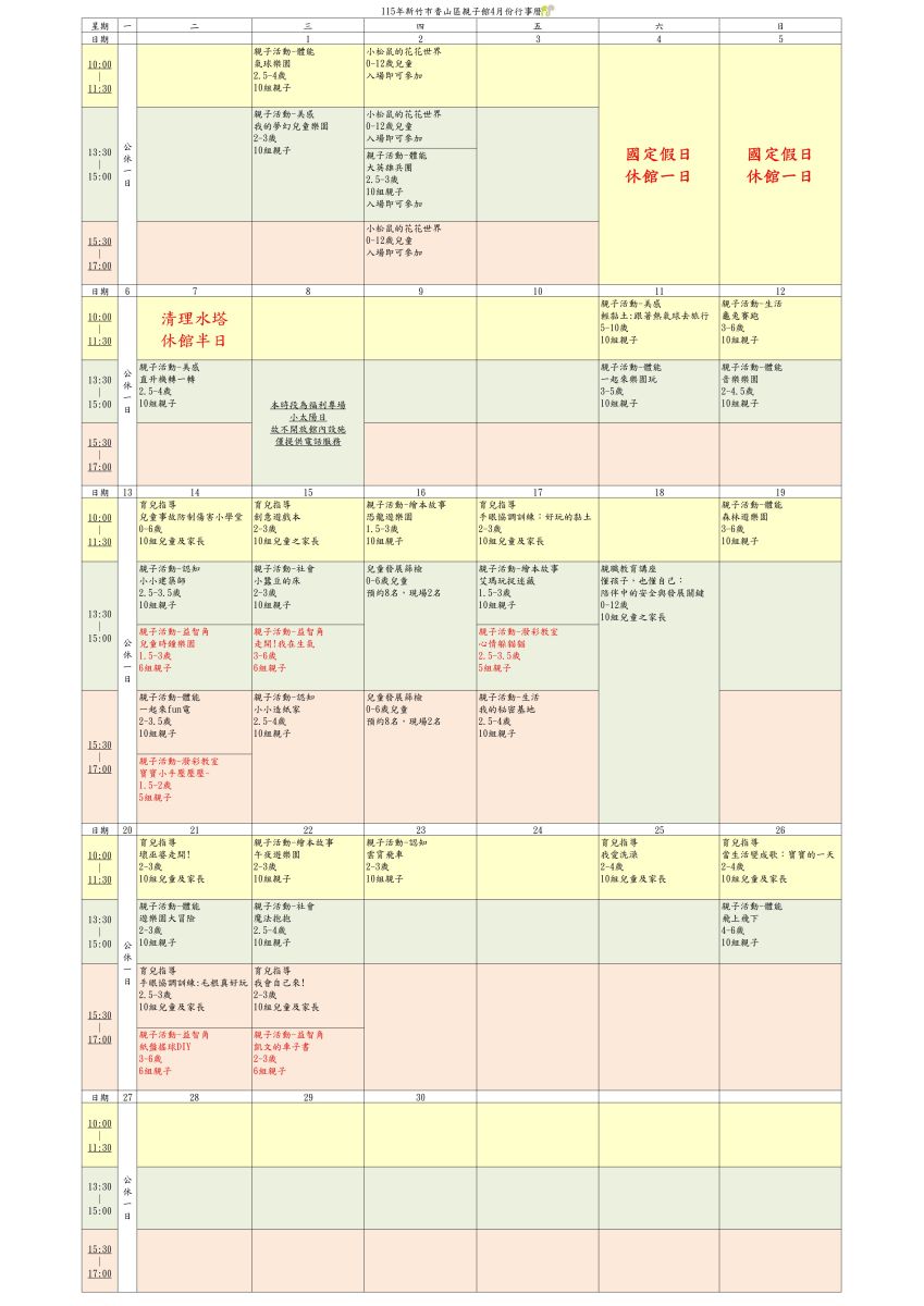 香山區_4月份活動行事曆(課程異動公告)